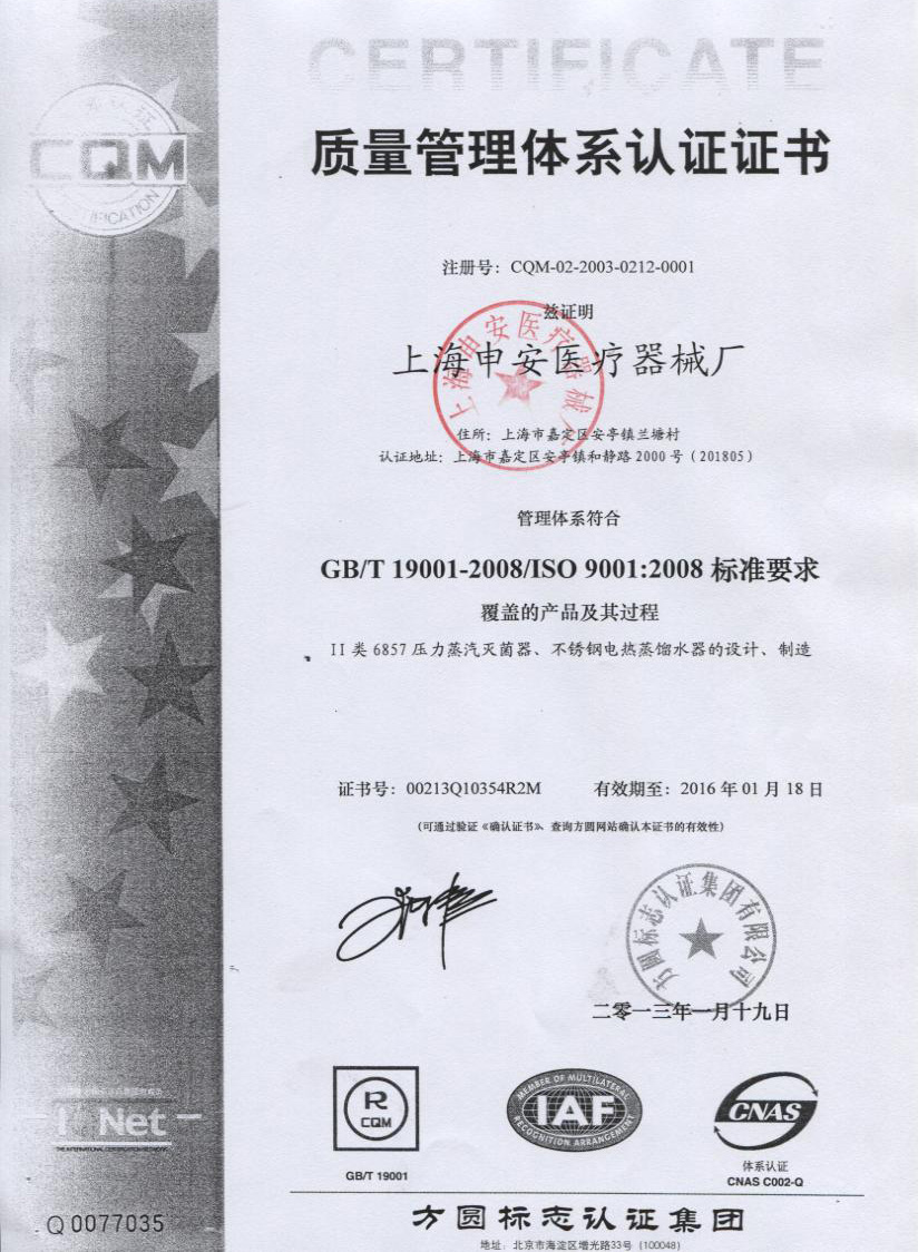 本品符合國家對壓力容器設(shè)計與制作的相關(guān)規(guī)定,并取得了食藥監(jiān)產(chǎn)品注冊證和消毒產(chǎn)品衛(wèi)生許可證,是我廠研制開發(fā)的新一代手提式滅菌器,其結(jié)構(gòu)先進(jìn)可靠,具有快捷簡便的操作方式和功能齊全的控制系統(tǒng),在安全控制上;設(shè)置了鍋內(nèi)有壓力自動鎖蓋及誤操作合蓋不升壓的裝置。本產(chǎn)品采用優(yōu)質(zhì)不銹鋼材料精制而成,滅菌指標(biāo)達(dá)到國家醫(yī)用手術(shù)級標(biāo)準(zhǔn),是各醫(yī)療衛(wèi)生、大專院校、食品化工、生物科研等單位對器械、敷料、藥液、食品器皿、培養(yǎng)基等物品進(jìn)行消毒滅菌的理想產(chǎn)品。